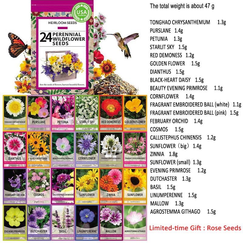 🌼 Don’t wait! Click “Shop Now” now to bring home this Mixed Perennial Flower Seeds collection. Your dream garden is just a few seeds away!