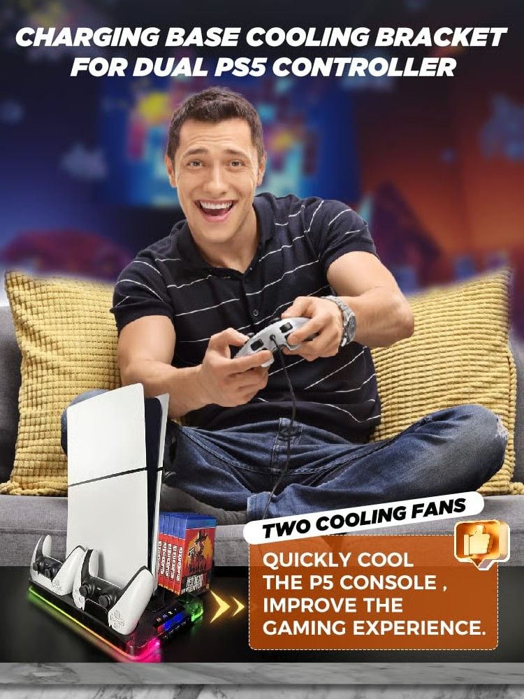 Transform your PS5 experience with the only all-in-one solution that handles cooling, charging, and organization in one premium package. Available in three colors to match your setup perfectly.